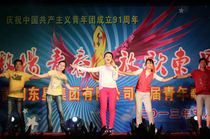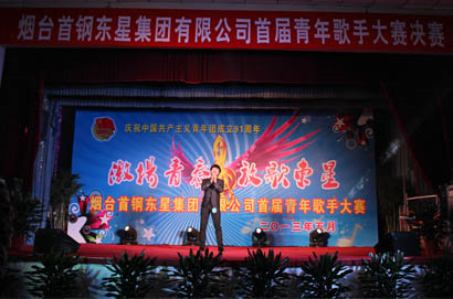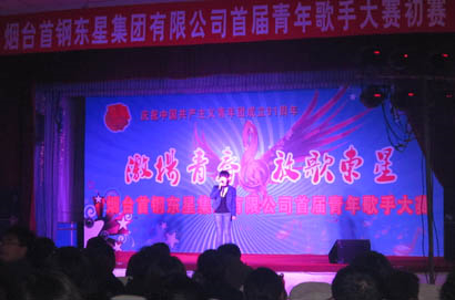 為慶祝中國共青團建團91周年,提升廣大團員青年的綜合素質(zhì),給青年人施展才華搭建平臺,營造健康活潑的文化氛圍,使青年人在東星這個大家庭里生活得更加陽光、更加自信、更加充實,更好地為東星的發(fā)展建設(shè)貢獻青春、智慧和力量,同時,也為了傳遞正能量,實現(xiàn)廣大團員、青年的青春夢,2013年5月8日,煙臺東星集團有限公司在職工活動中心隆重舉辦了以“激揚青春•放歌東星”為主題的煙臺東星集團首屆青年歌手大賽,公司本部助理以上領(lǐng)導(dǎo)親臨比賽現(xiàn)場并為獲獎選手頒發(fā)了獎狀。